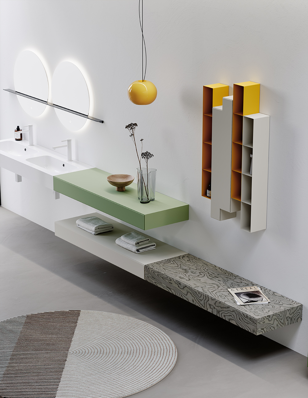 Dodici is a revolutionary bathroom system designed witheach module's height being twelve cm or its multiples. Combining Italian sophistication with functionality, this innovative collection o ers unlimited customization opportunities. With various length options, it allows youto create a modern and unique design for your bathroom. Dodici’s flexible structure provides freedom in every stage of design, blending elegance with practicality. Experience quality and style in every detail.