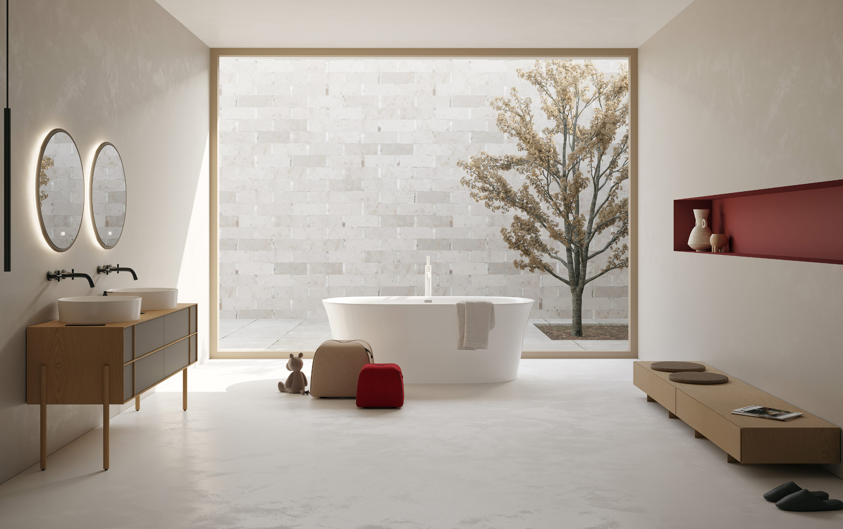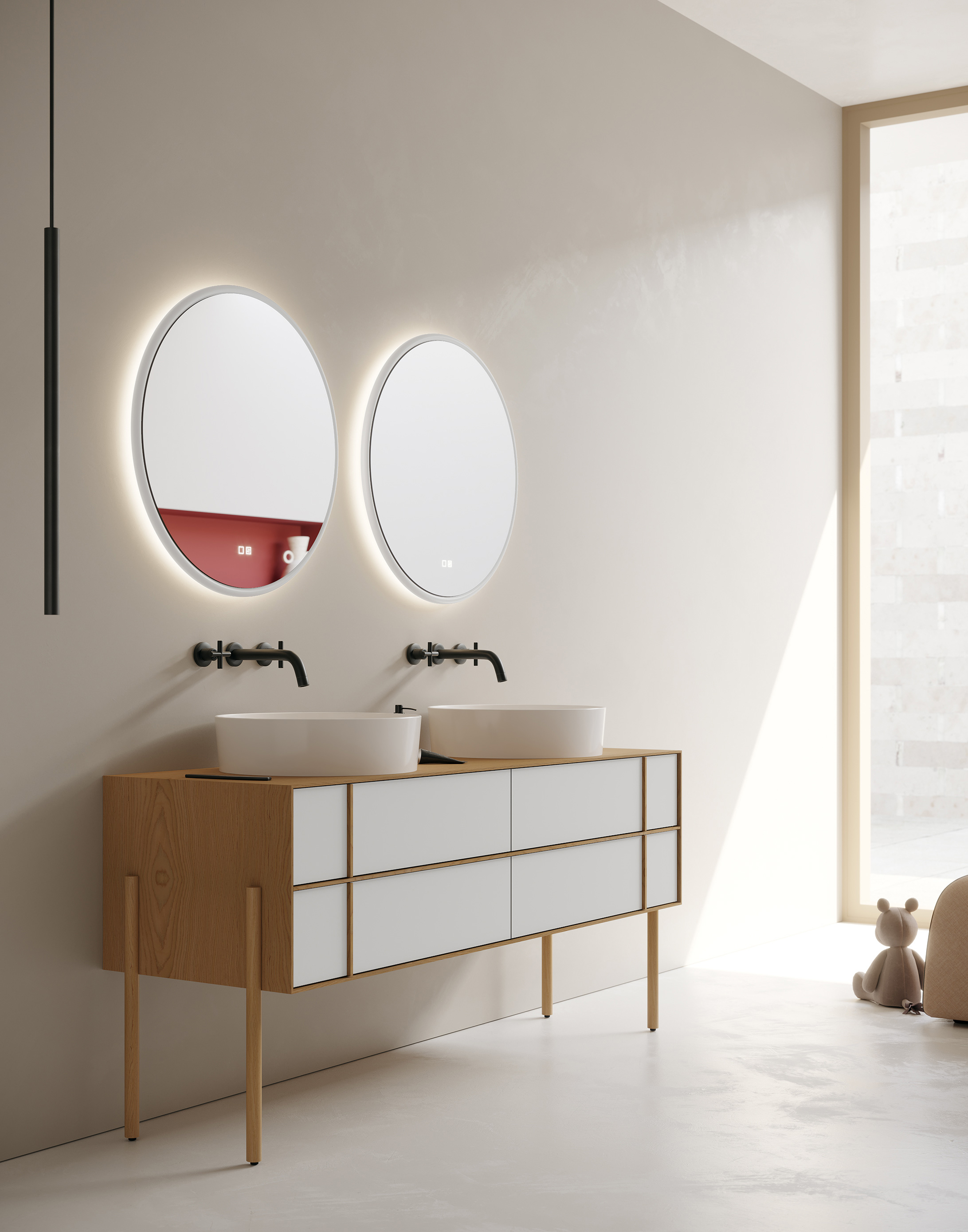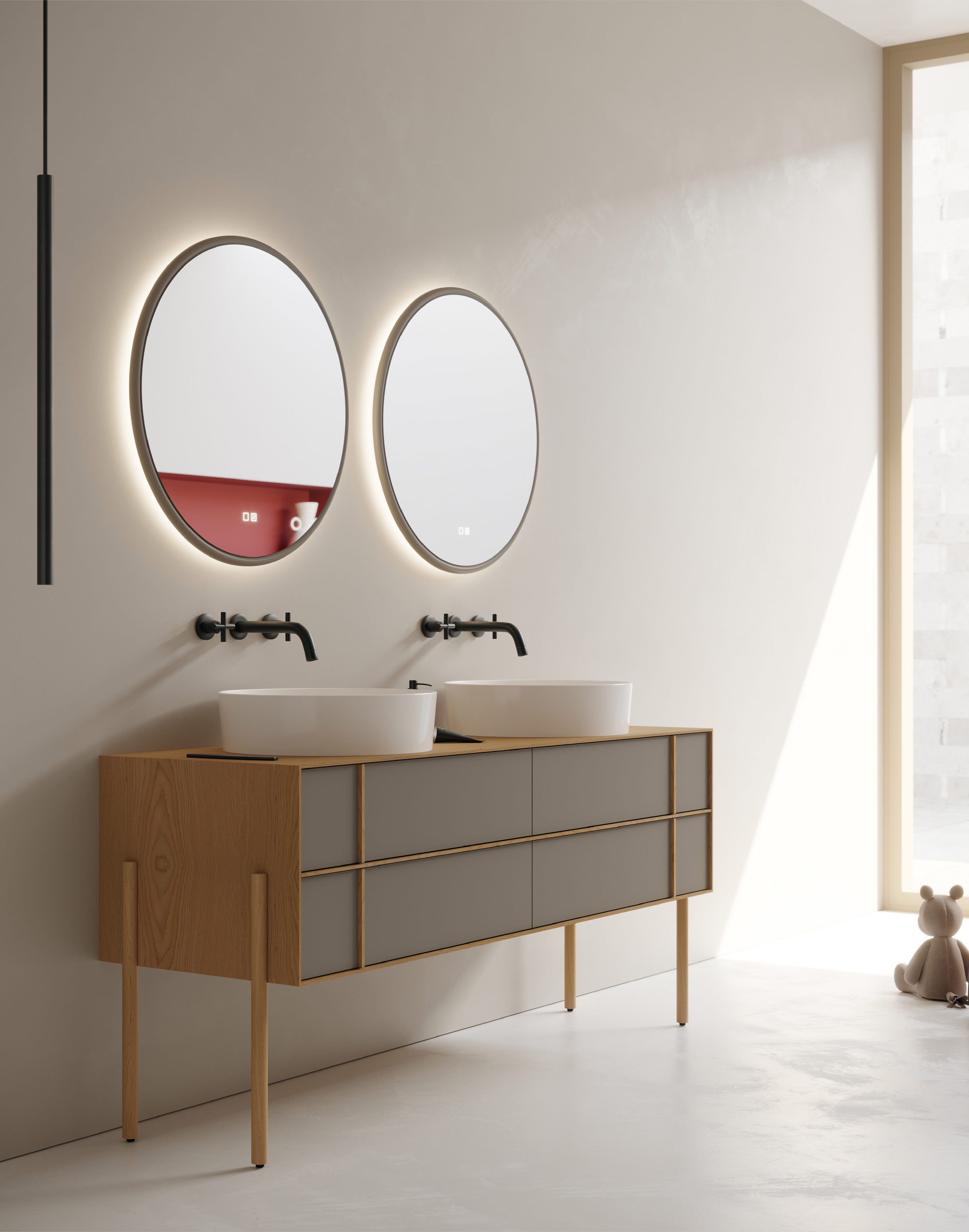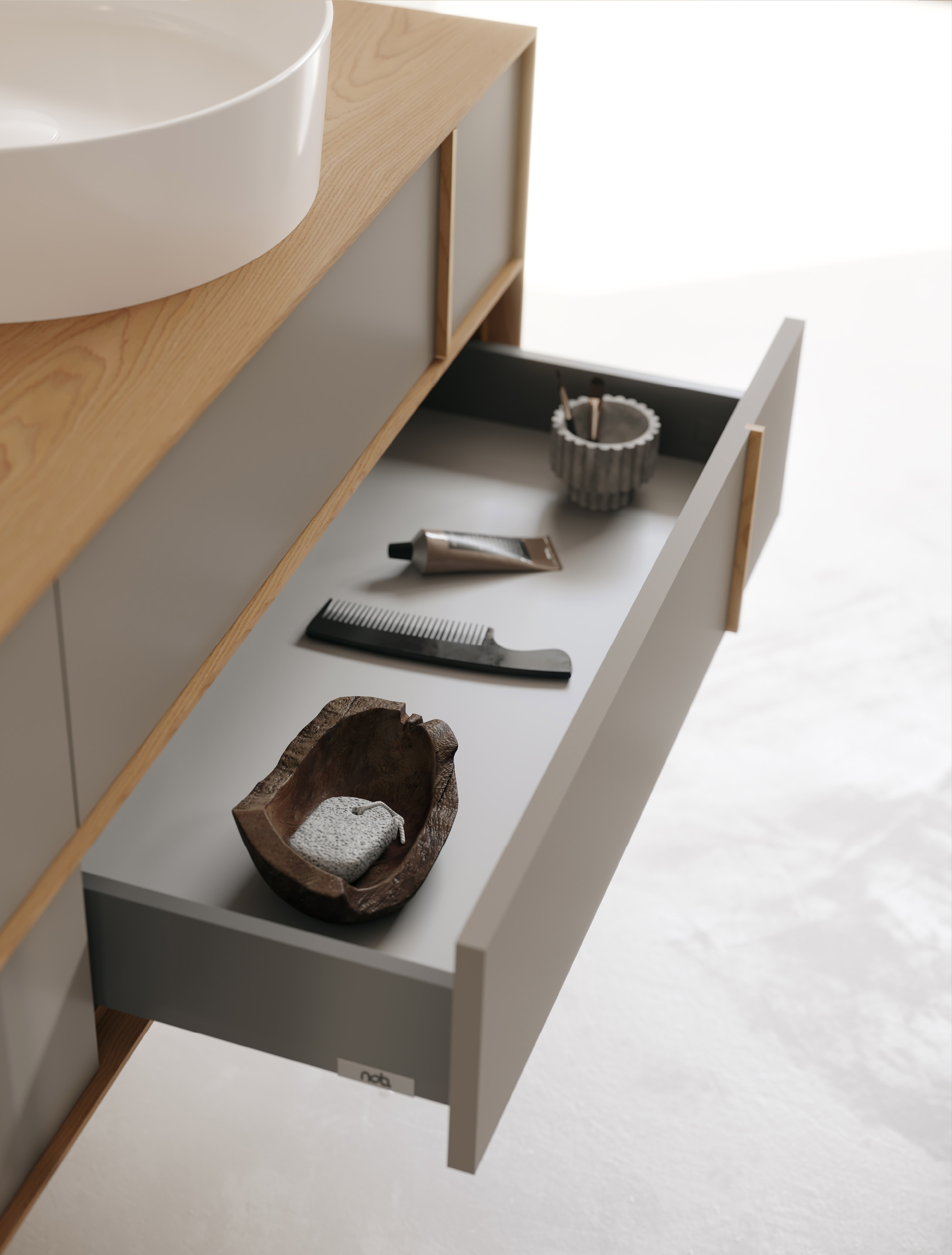 KATSURA bathroom cabinet, bearing the signature of Setsu & Shinobu Ito, is a magnificent masterpiece that harmoniously blends striking aesthetics with functionality. Every detail of the design has been meticulously considered, adding a unique elegance and simplicity to the atmosphere of your bathroom.
