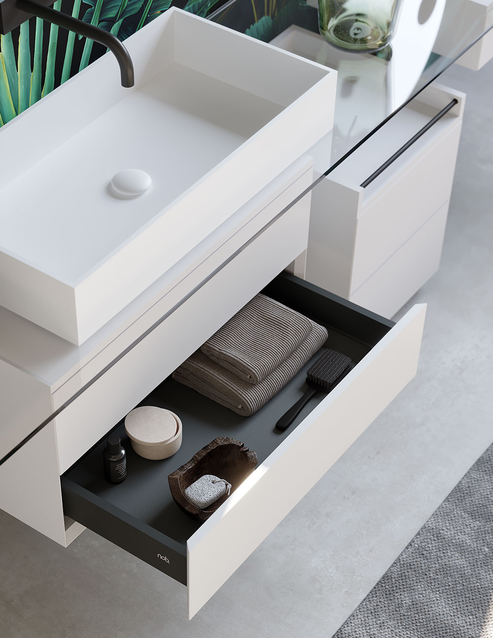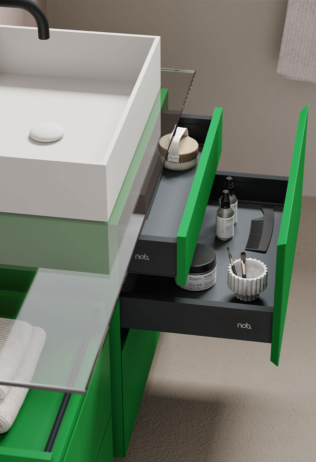 Designer Sezgin Aksu brings a fresh look to bathrooms with the Raito Collection designed for NOB. Bathroom. The Raito Collection, with its stylish and modern design featuring Pantone colors, makes your bathroom more elegant and stylish.The Raito Collection fits into any bathroom space with different size and color options. Consisting of bathroom cabinets, mirrors, sinks, and accessories, the Raito Collection helps you redesign your bathroom from scratch.